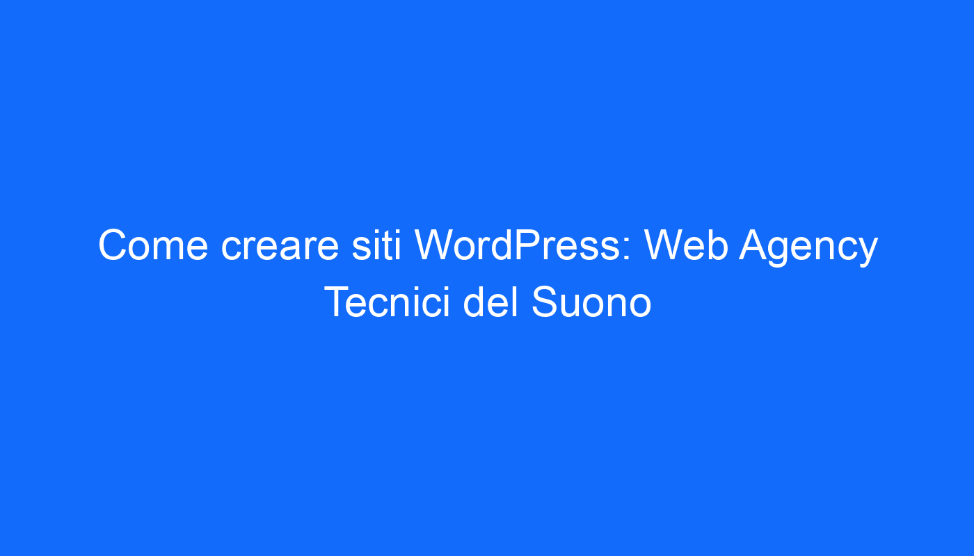 Perché dovresti scegliere Tecnici del Suono per la creazione del tuo sito WordPress?