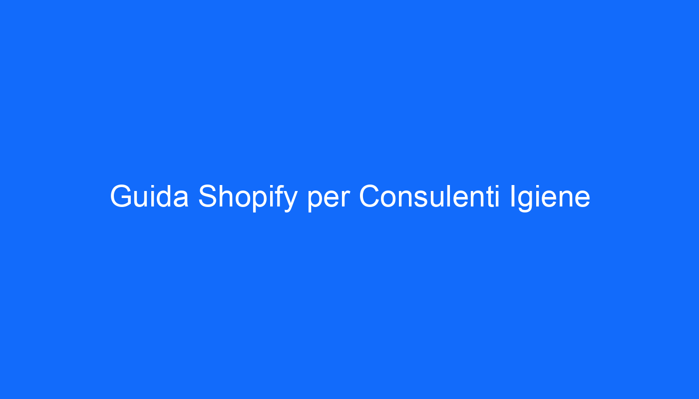Creare un Sito Shopify da Consulente d’Igiene Alimentare: La Guida Definitiva