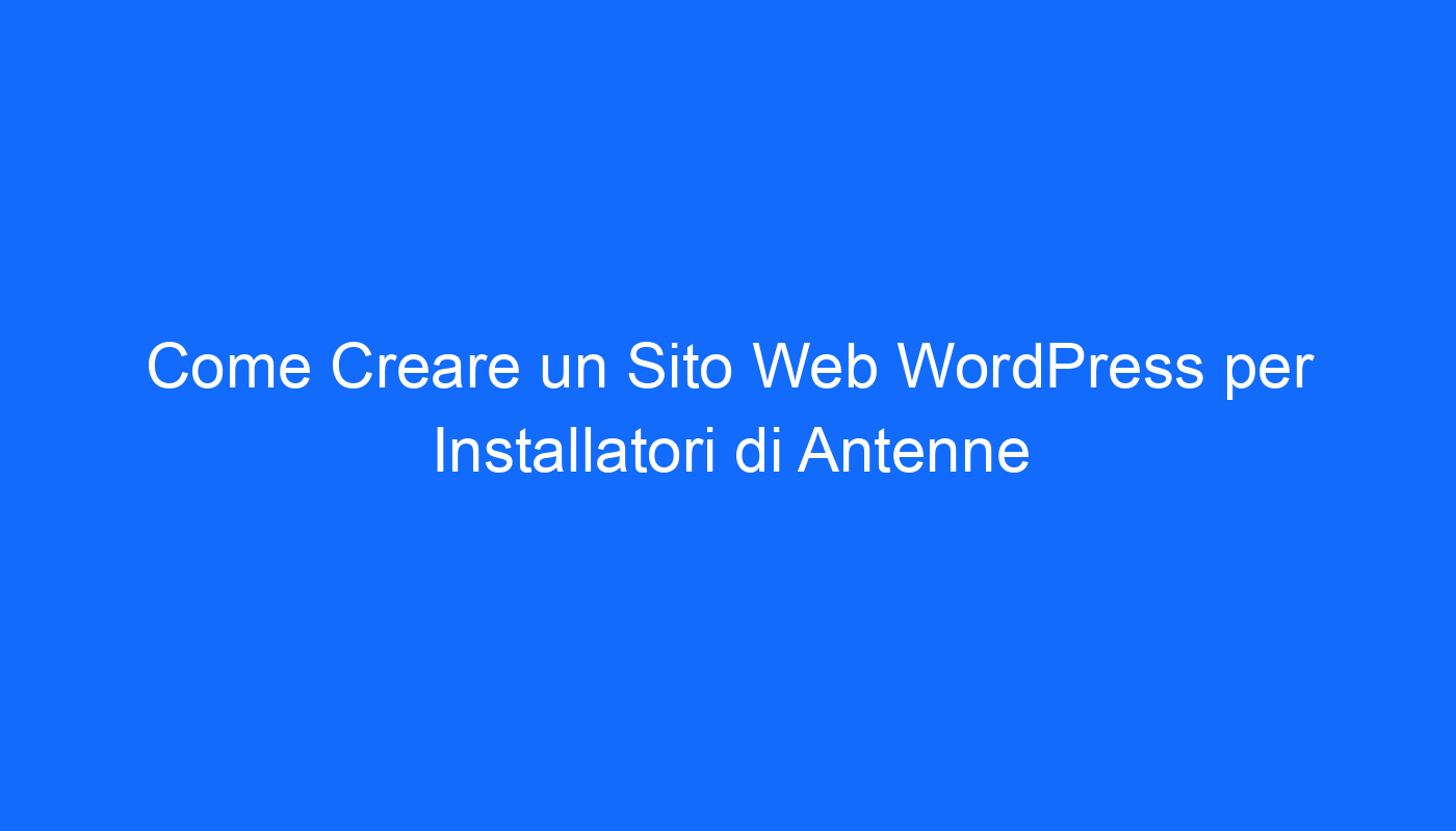 Crea un Sito Web WordPress Professionale per gli Installatori di Antenne