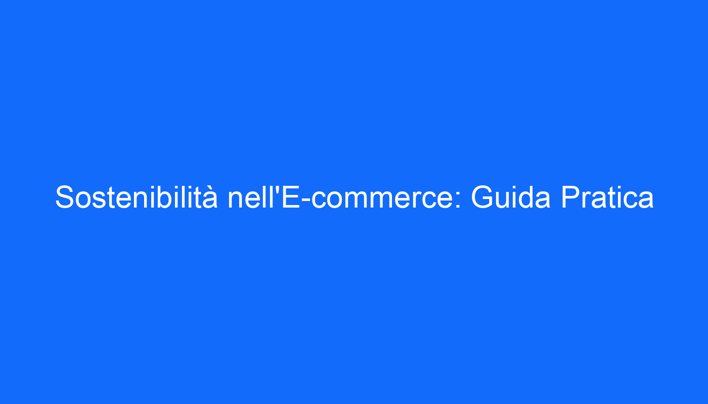 Guida all’E-commerce Eco-Friendly: Sostenibilità e Successo nel Mercato Digitale
