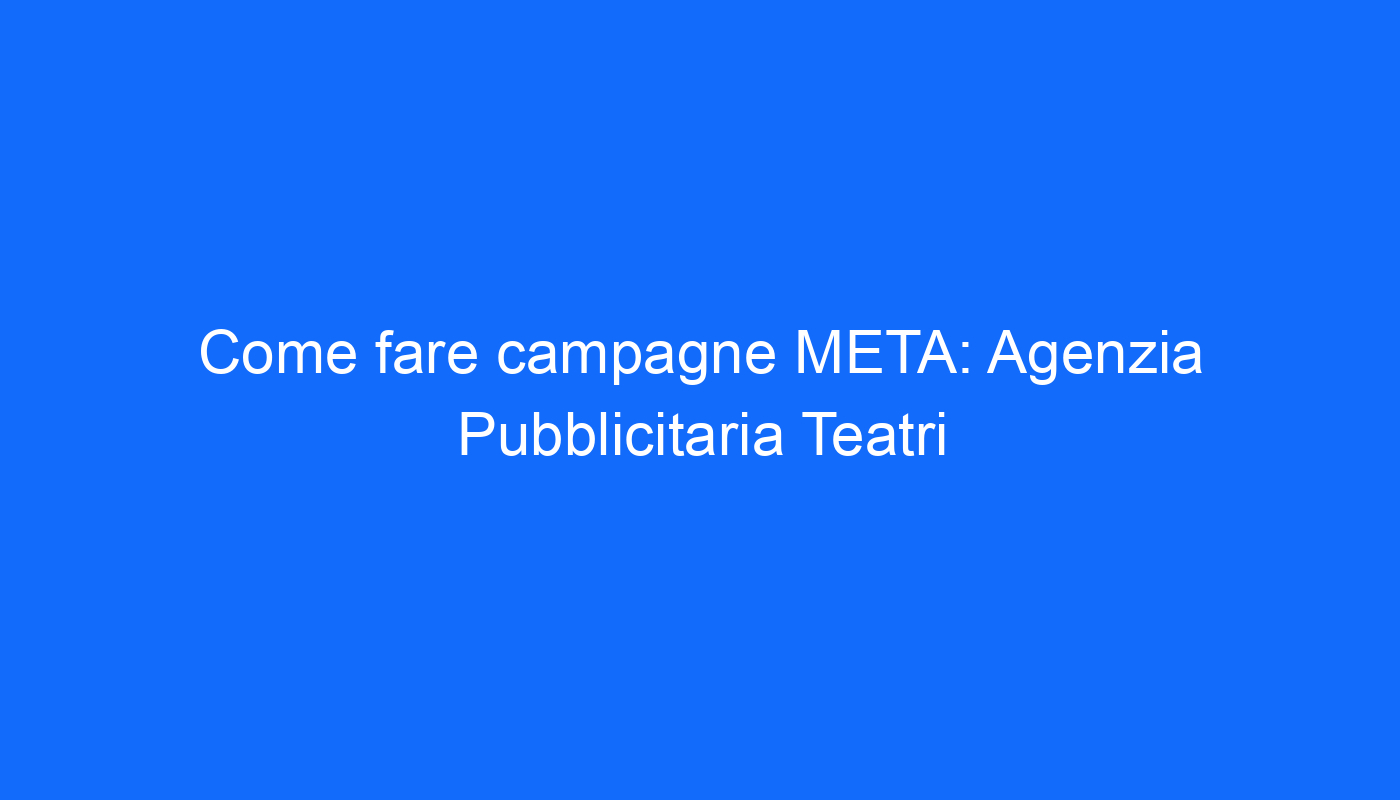 Scopri il potenziale delle campagne META: Agenzia Pubblicitaria Teatri