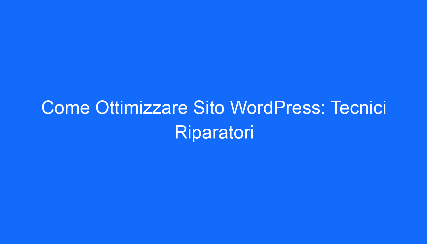 Come Ottimizzare Sito WordPress: Tecnici Riparatori