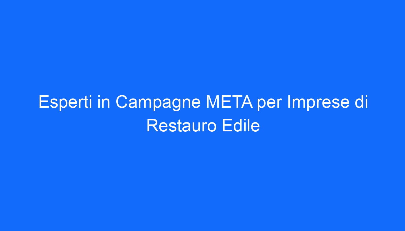 Esperti in Campagne META: Il Vostro Partner per il Restauro Edile