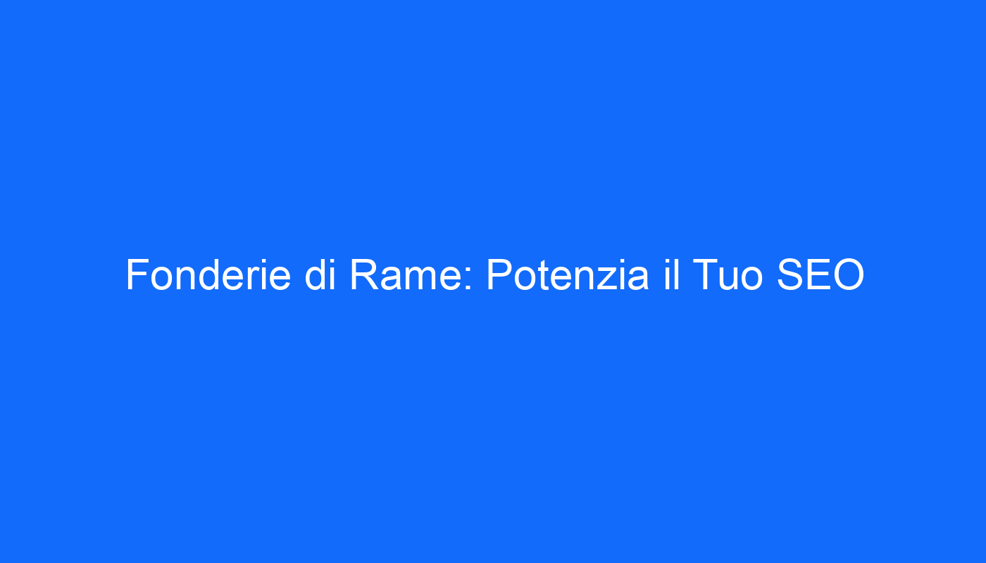 Grazie alla nostra esperienza e alla profonda comprensione del settore, siamo pronti a supportare le fonderie di rame nel loro cammino verso il successo. La SEO rappresenta un ulteriore passo per affrontare le sfide del mercato contemporaneo e aprire le porte a opportunità di crescita senza precedenti. Pensiamo al futuro con fiducia: la qualità e l’affidabilità della nostra consulenza faranno la differenza.