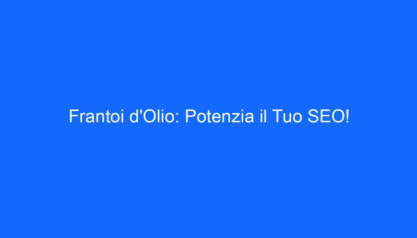 La Magia di SEO per Frantoi: Un’Analisi Profonda