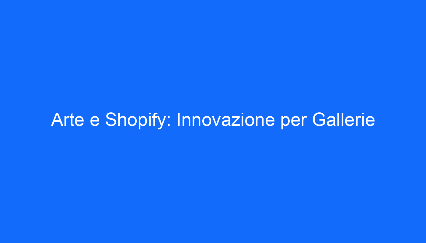Gallerie d’Arte e Shopify: Soluzioni Innovative per il Futuro dell’Arte