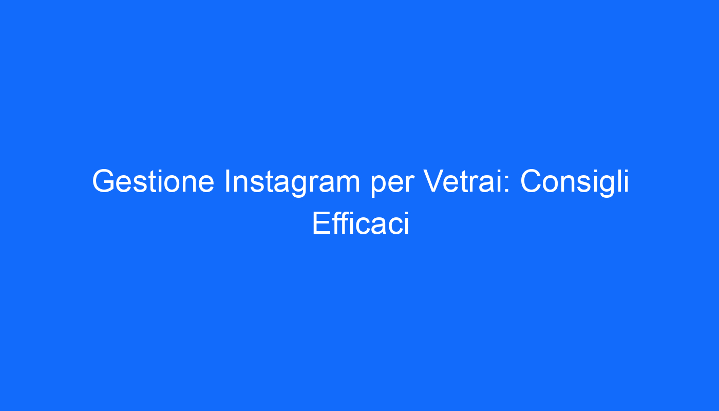 Instagram è diventato uno strumento di marketing sempre più importante per le aziende di tutti i settori, compresi i vetrai. Con oltre 1 miliardo di utenti attivi mensili, Instagram offre un’ampia opportunità per promuovere i servizi di vetrai e raggiungere un pubblico più vasto. Tuttavia, per ottenere risultati positivi, è fondamentale ottimizzare la gestione di Instagram in modo efficace. In questo articolo, esploreremo alcuni consigli utili per migliorare la visibilità e l’engagement su Instagram per i vetrai.