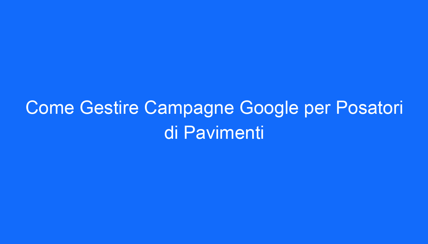 Gestire in modo efficace le campagne Google Ads per posatori di pavimenti è fondamentale per ottenere risultati concreti e massimizzare la tua visibilità online. Ecco alcune strategie che puoi utilizzare per gestire al meglio le tue campagne: