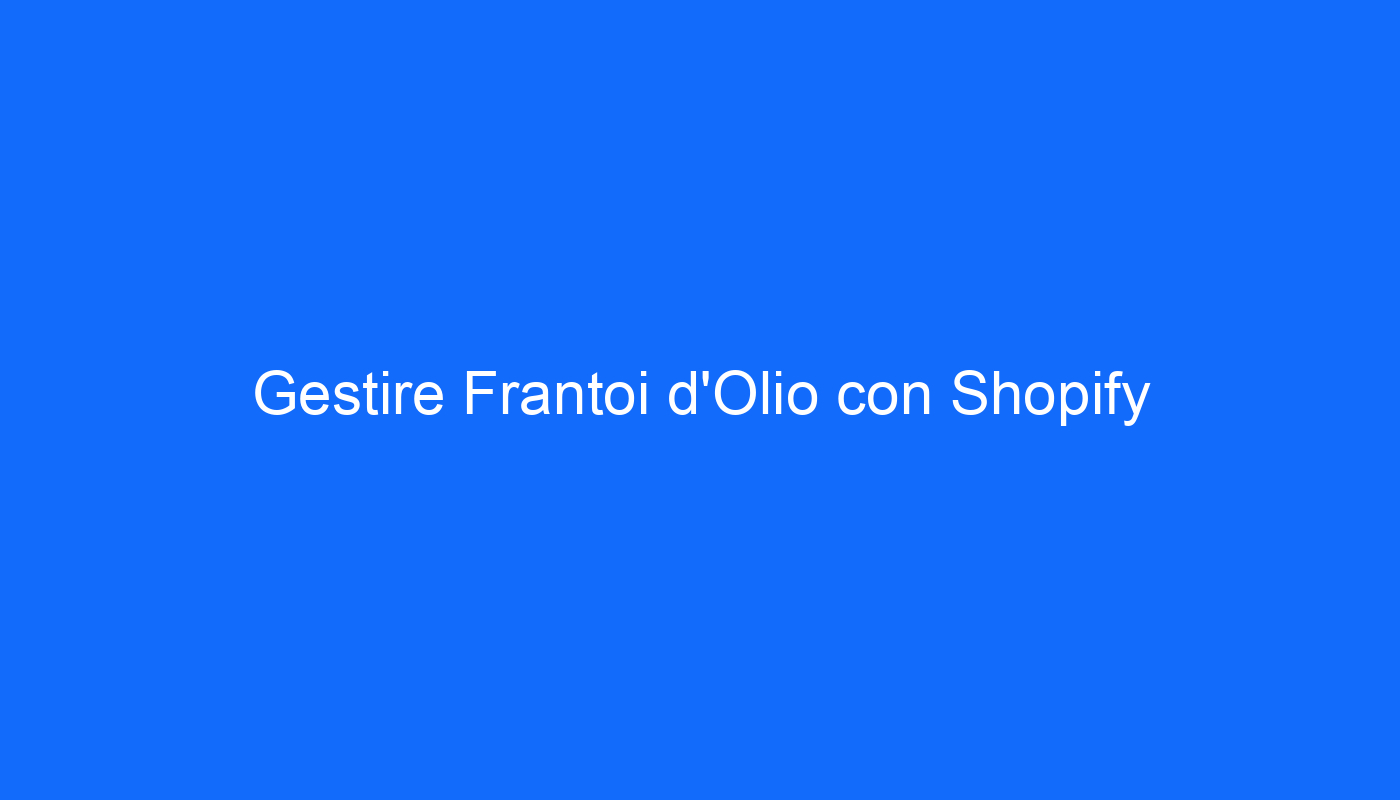 L’Arte dell’Olio: Frantoi di Olio d’Oliva con Shopify