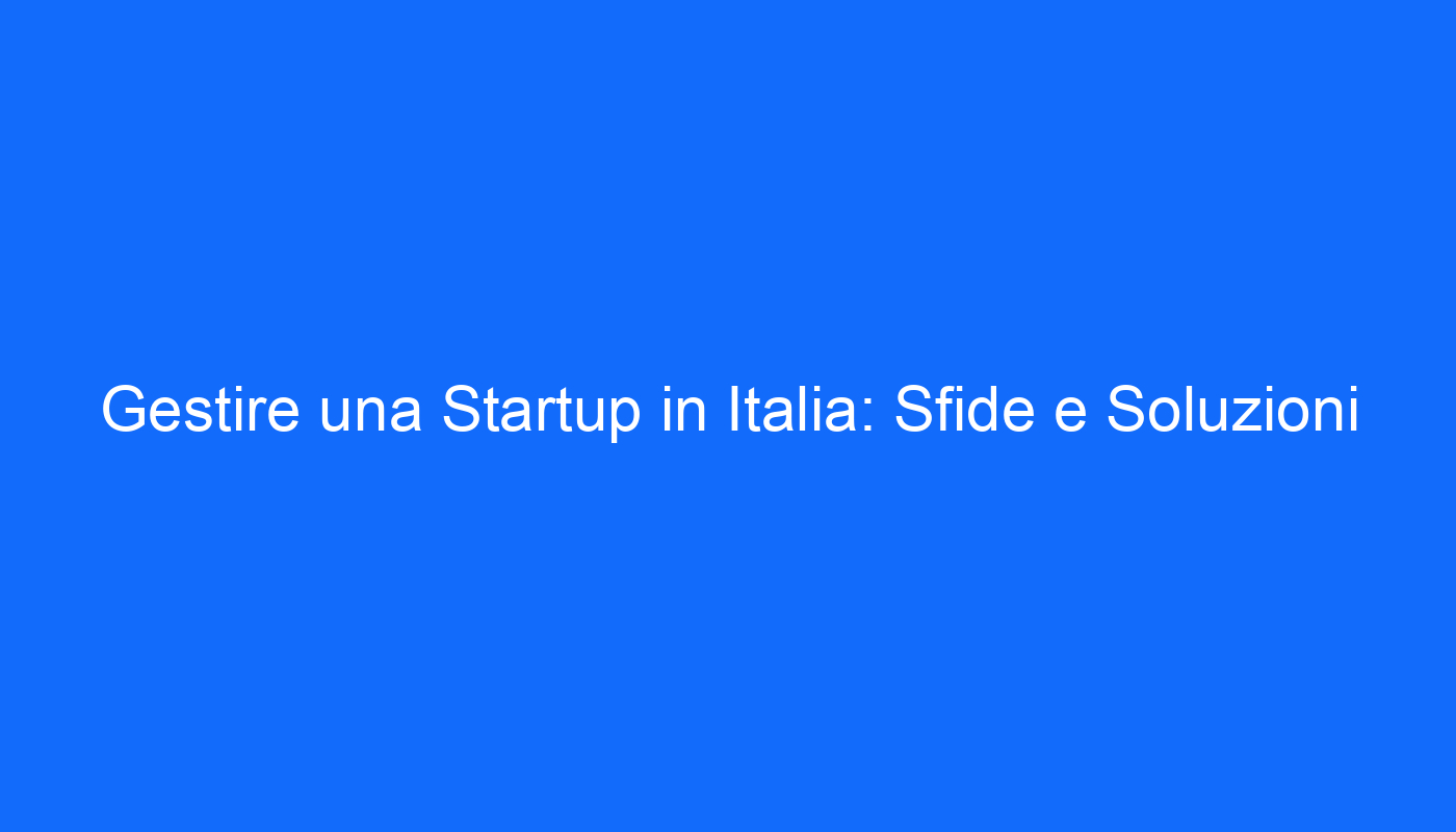 Gestire una Startup in Italia: Sfide e Soluzioni