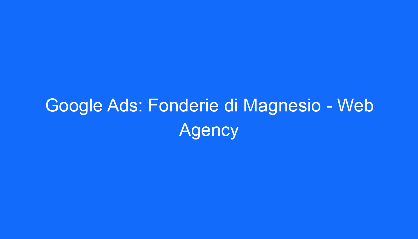 Ottieni risultati straordinari con Google Ads: Fonderie di Magnesio – Web Agency