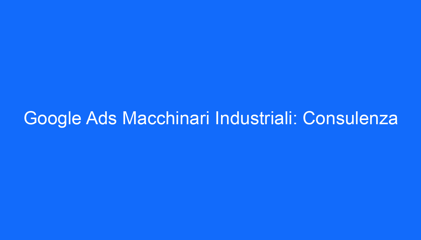 Ottieni i migliori risultati con Google Ads Macchinari Industriali: Consulenza