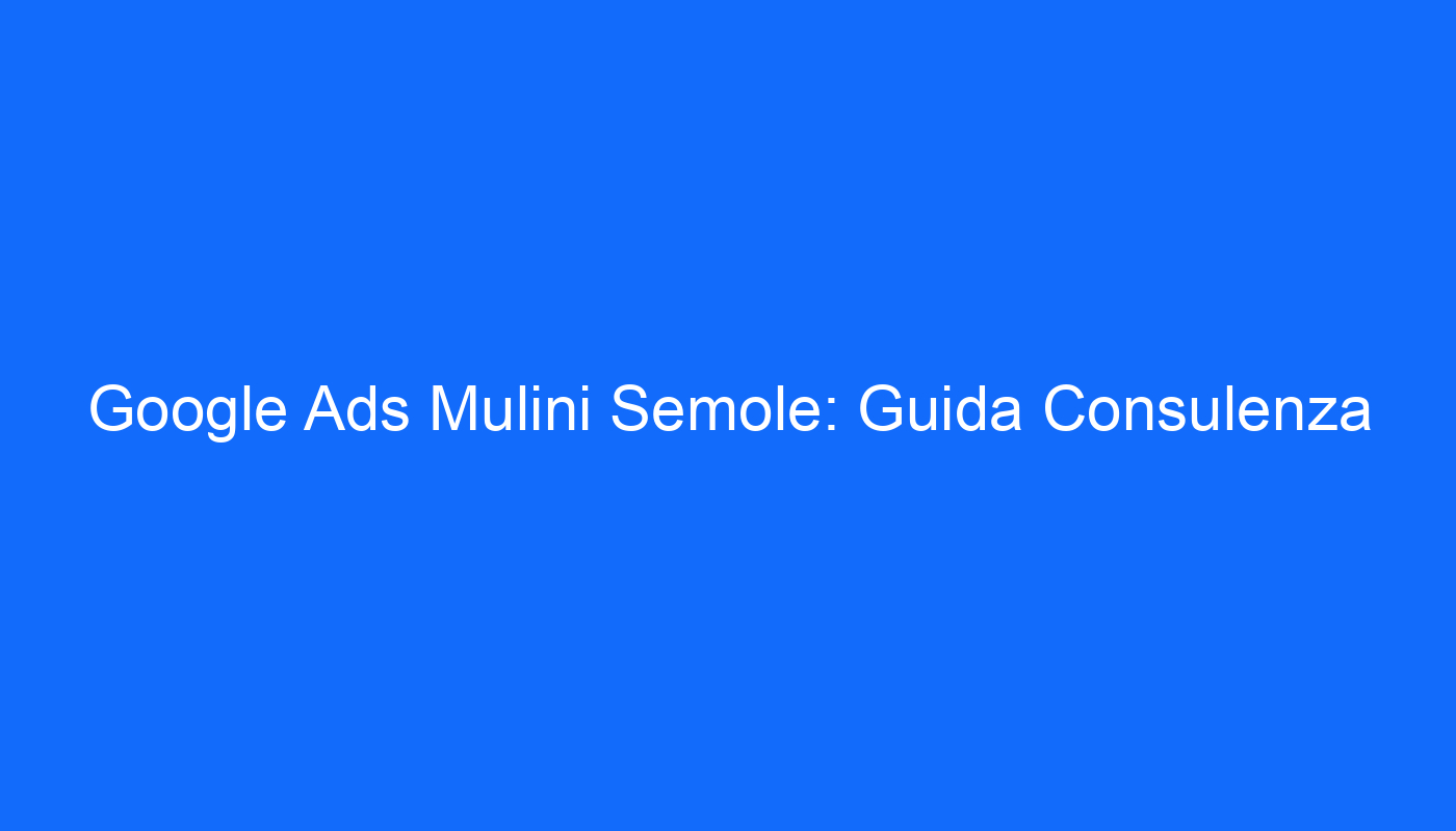 Massimizza il potenziale della tua attività con Google Ads Mulini Semole: Guida Consulenza