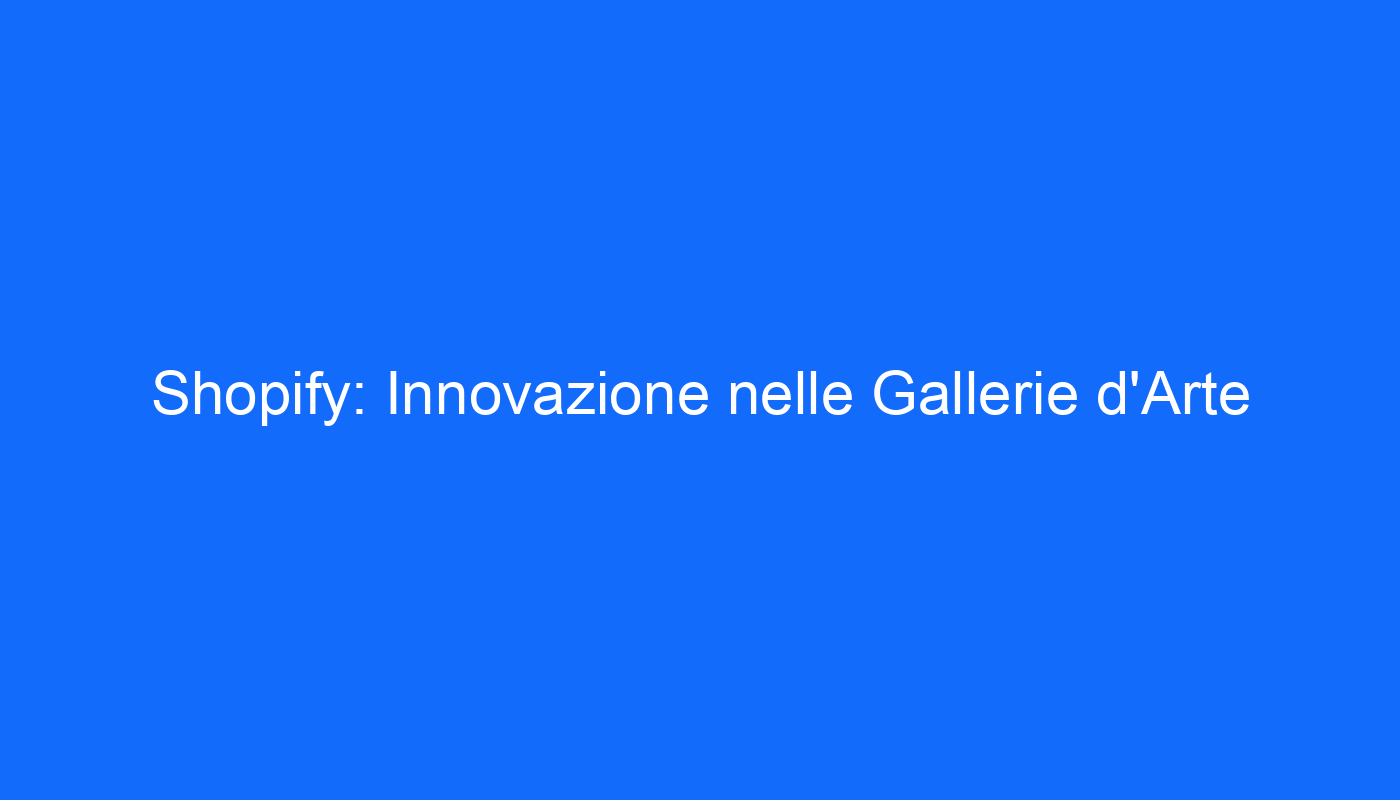 Gallerie d’Arte e Shopify: Soluzioni Innovative per il Futuro dell’Arte