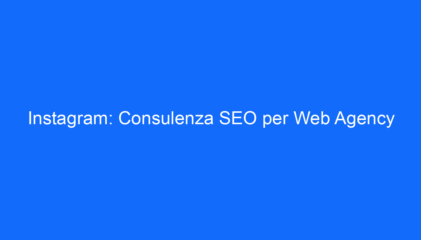 Aumenta la visibilità online della tua Web Agency con la consulenza SEO di Instagram