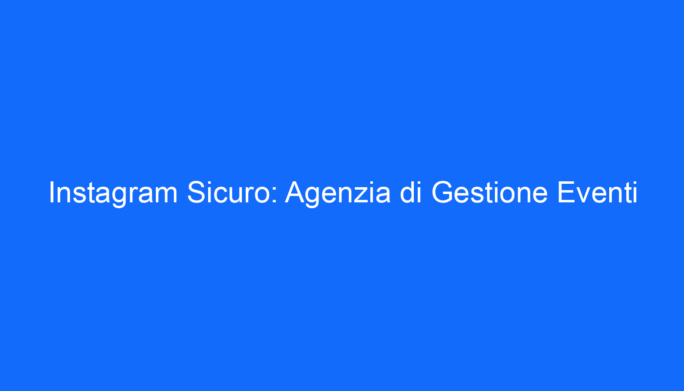 Scopri come Instagram Sicuro: Agenzia di Gestione Eventi può rivoluzionare il tuo business!