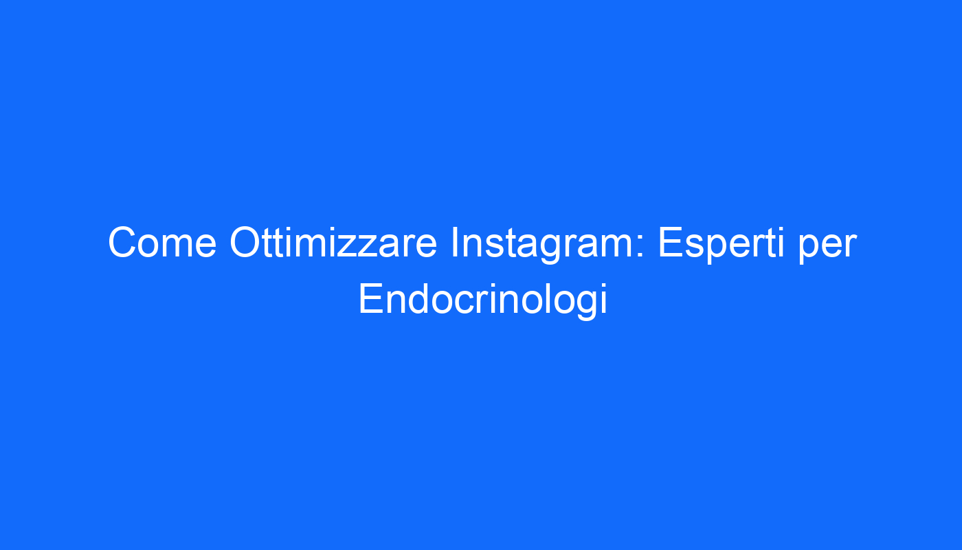 Come Ottimizzare Instagram: Esperti per Endocrinologi