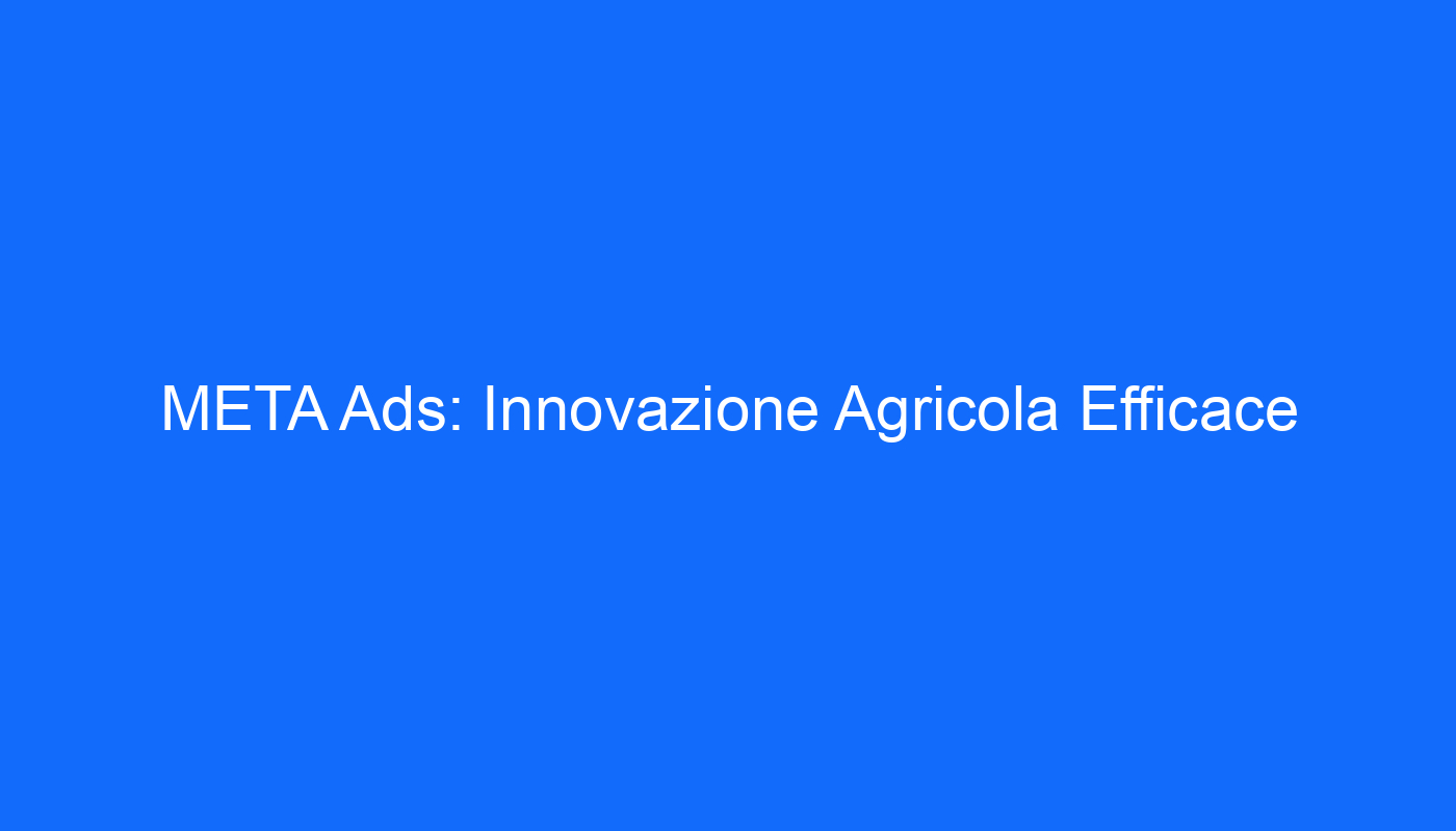 META Ads: L’Innovazione Tecnologica che Rivoluziona l’Agricoltura