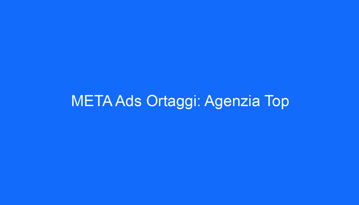 META Ads Ortaggi: Agenzia Top per il Tuo Marketing Digitale