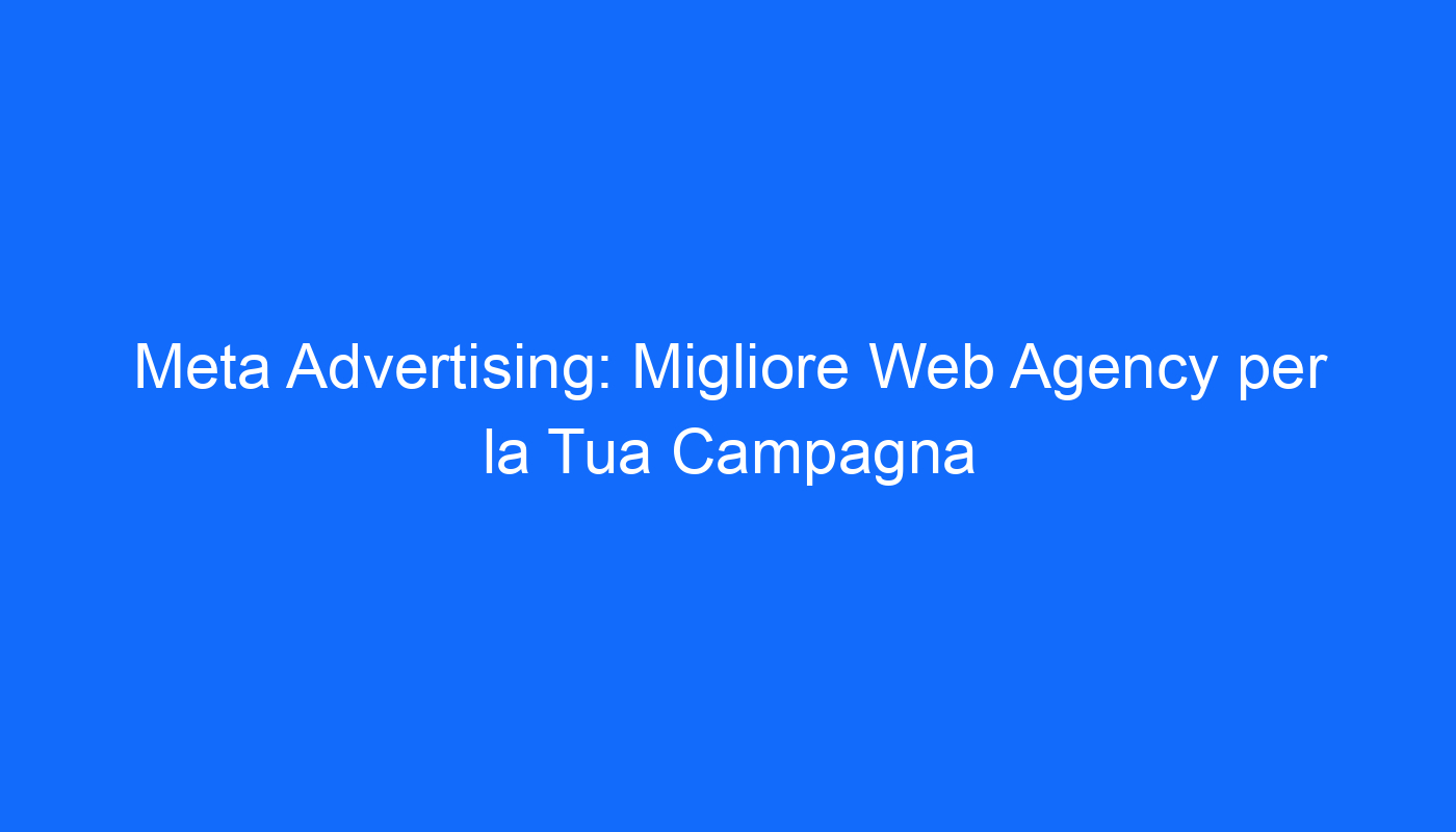 Hai mai sentito parlare di Meta Advertising? Se desideri far crescere il tuo business online e ottenere risultati concreti, allora la Migliore Web Agency per la Tua Campagna è ciò di cui hai bisogno! Ma cosa significa esattamente Meta Advertising? In questo articolo ti spiegheremo nel dettaglio questa potente strategia di marketing digitale e come può aiutarti a lasciare il tuo marchio nel cuore degli utenti.