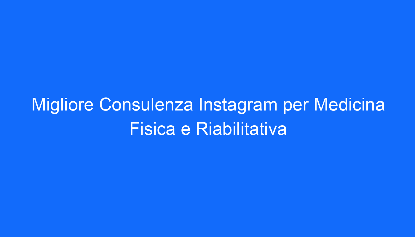 Quali sono i vantaggi di ottenere consulenza per Instagram nel campo della Medicina Fisica e Riabilitativa?