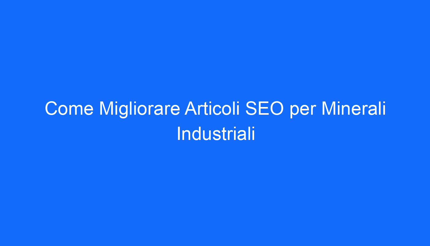 Nel mondo digitale odierno, avere una presenza online forte e una buona visibilità sui motori di ricerca è essenziale per il successo di qualsiasi azienda. Questo è particolarmente vero per le aziende che operano nel settore dei minerali industriali. Se sei coinvolto in questa industria, è fondamentale che i tuoi articoli SEO per i minerali industriali siano ottimizzati per massimizzare la tua visibilità online e raggiungere un pubblico più ampio. In questo articolo, esploreremo alcune strategie efficaci per migliorare la SEO dei tuoi contenuti relativi ai minerali industriali e garantire che la tua azienda sia ben posizionata sui motori di ricerca.