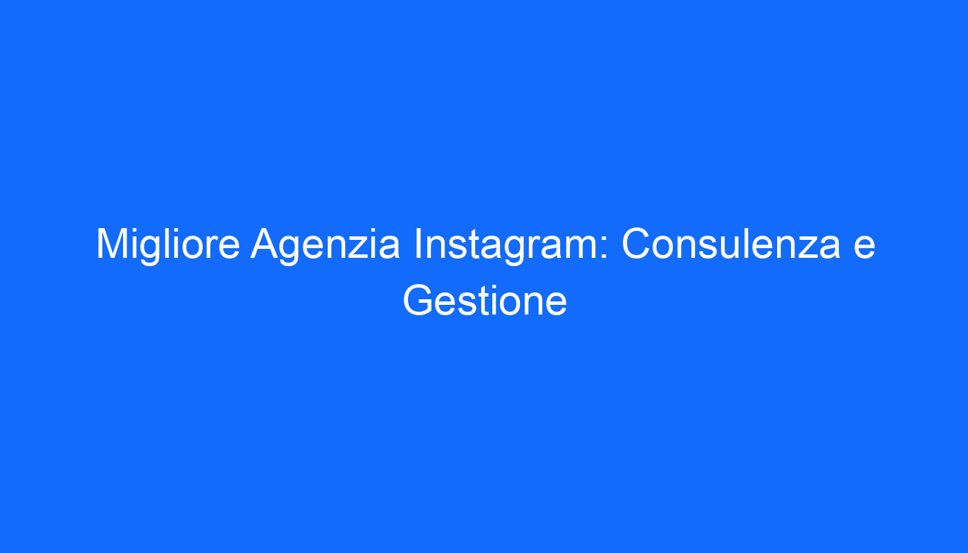 Migliore Agenzia Instagram: Consulenza e Gestione
