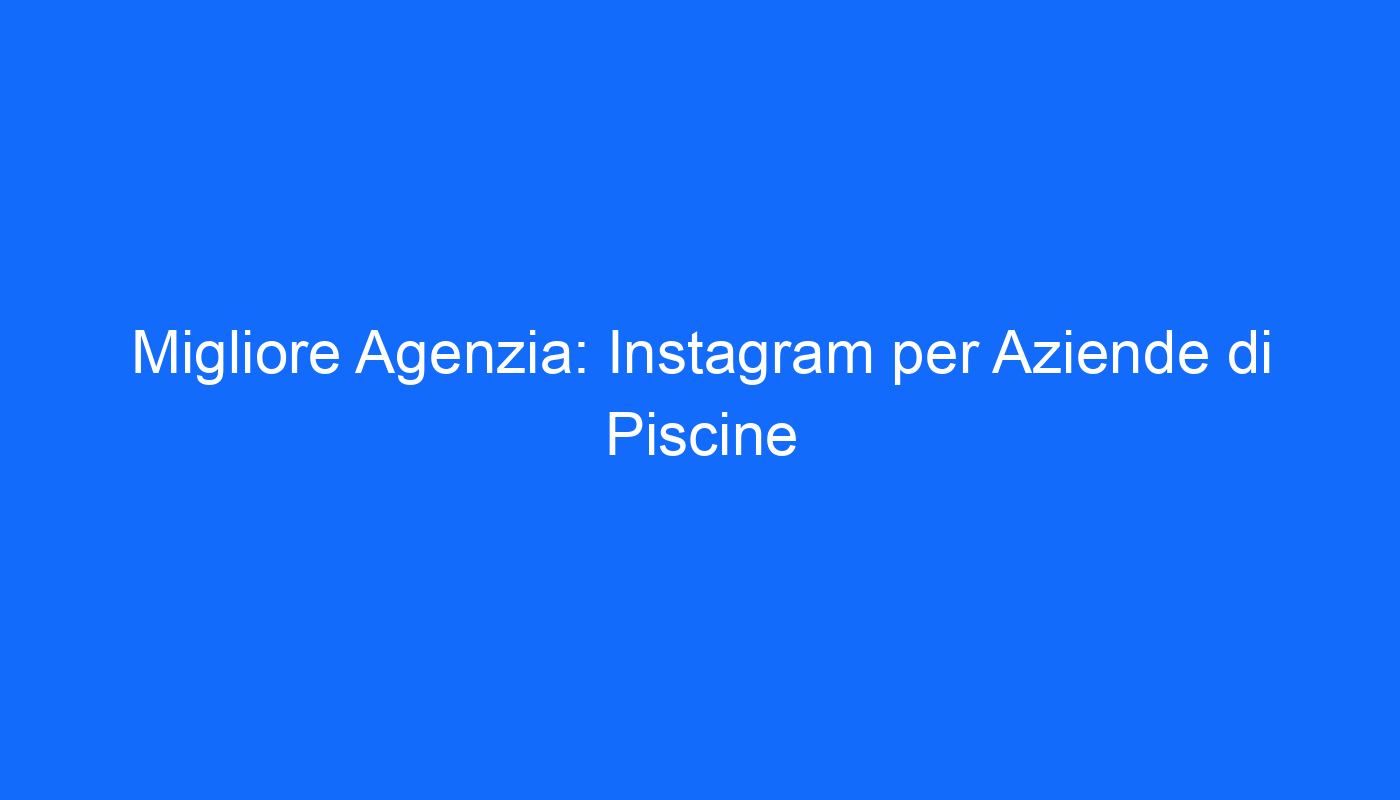 Migliore Agenzia: Ottimizza la Presenza delle Aziende di Piscine su Instagram