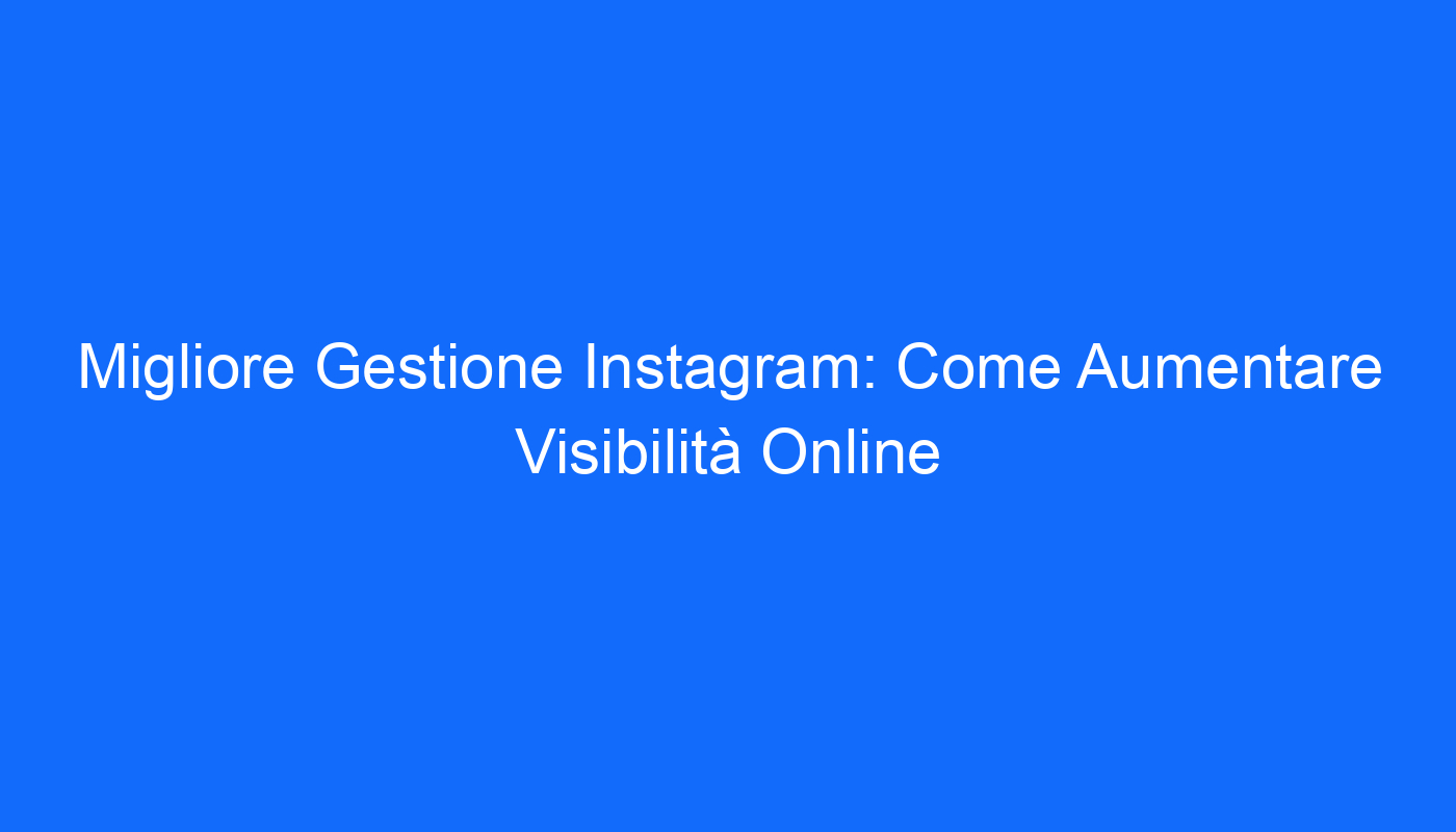 Instagram è diventato uno dei principali canali di comunicazione per le aziende e i professionisti che vogliono aumentare la loro visibilità online. Tuttavia, la gestione di un account Instagram richiede tempo, competenze e strategie efficaci per raggiungere i risultati desiderati. In questo articolo, ti forniremo informazioni su come aumentare la tua visibilità online attraverso la migliore gestione di Instagram. Scopri le strategie vincenti e gli strumenti che ti aiuteranno a ottenere il massimo da questo canale di social media.