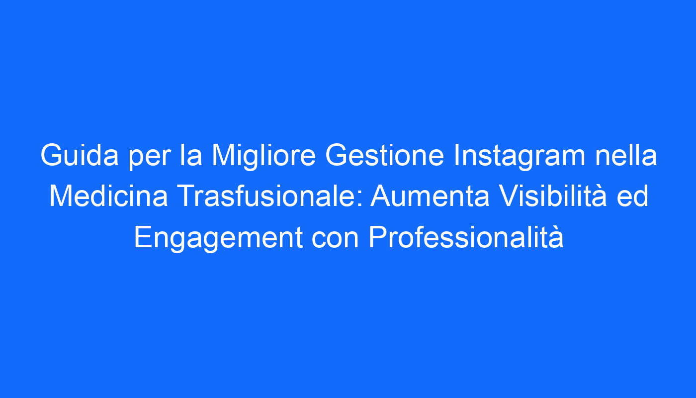 Migliore Gestione Instagram per Medicina Trasfusionale