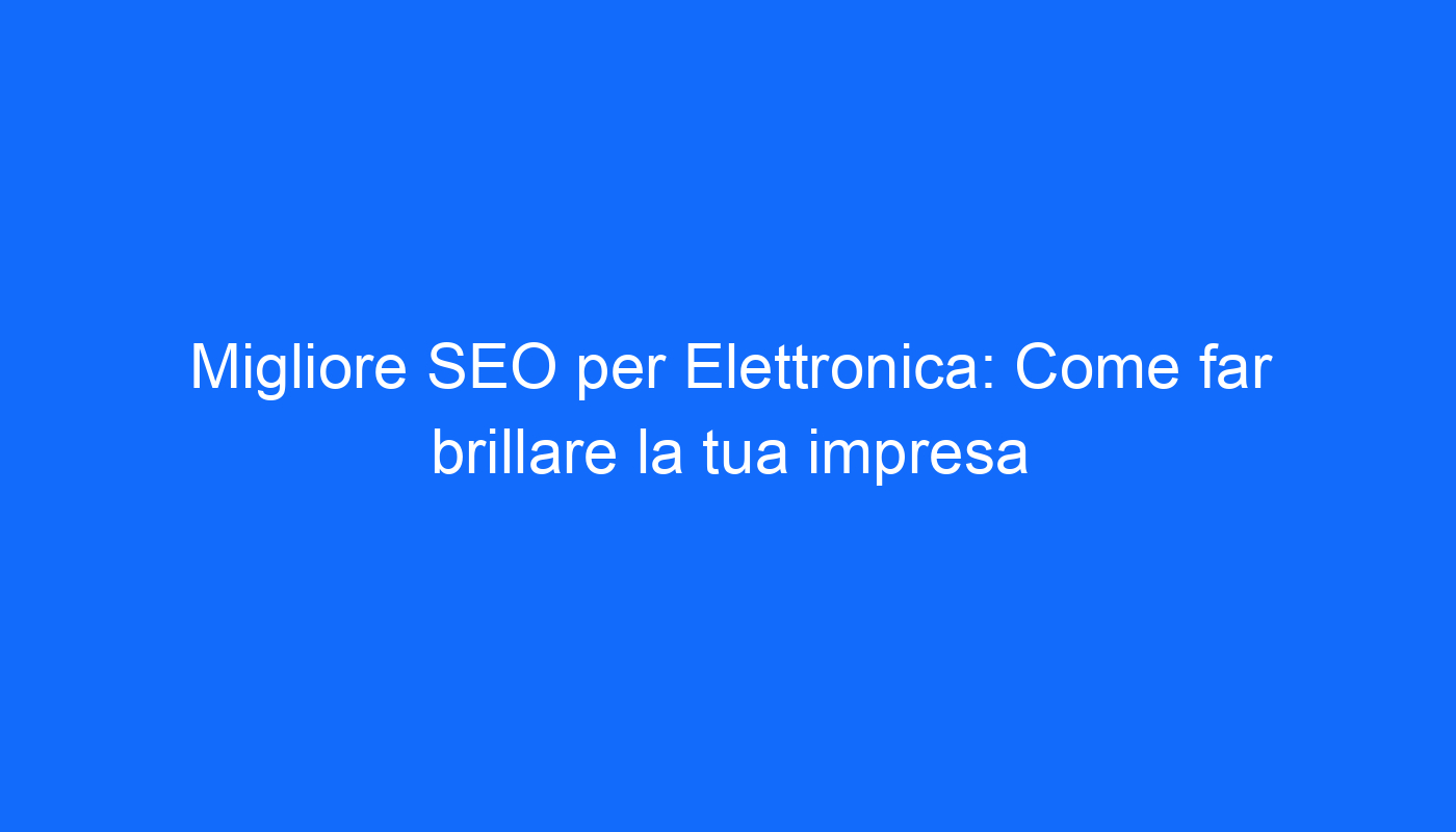 La presenza online è fondamentale per qualsiasi tipo di impresa nel settore dell’elettronica. Con la giusta strategia di SEO (Search Engine Optimization), puoi ottenere una visibilità migliore sui motori di ricerca e far brillare la tua impresa. In questo articolo, esploreremo alcune delle migliori pratiche di SEO per il settore dell’elettronica e come possono contribuire al successo della tua impresa.