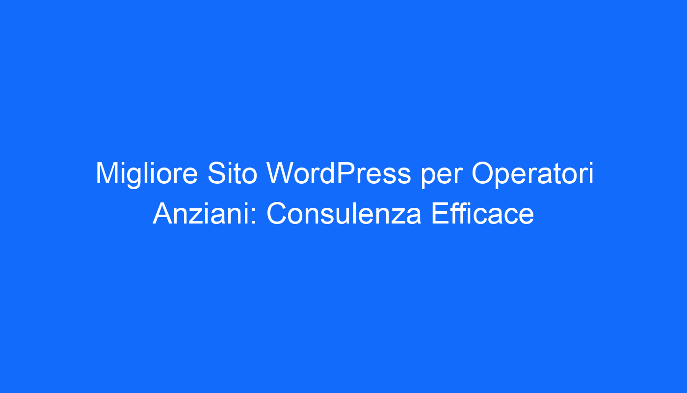 Il Migliore Sito WordPress per Operatori Anziani: Consulenza Efficace