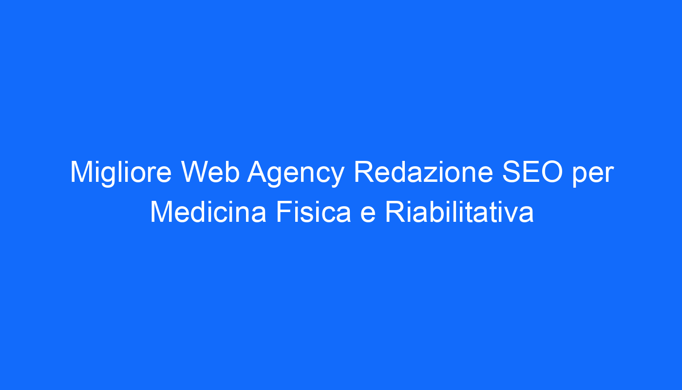 Migliore Web Agency per la SEO della Medicina Fisica e Riabilitativa: Massima Professionalità
