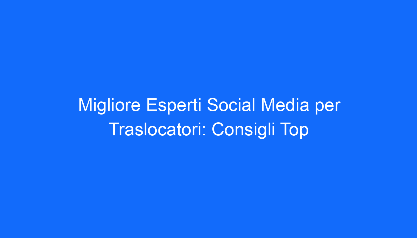 Migliore Esperti Social Media per Traslocatori: Consigli Top per un Successo Online
