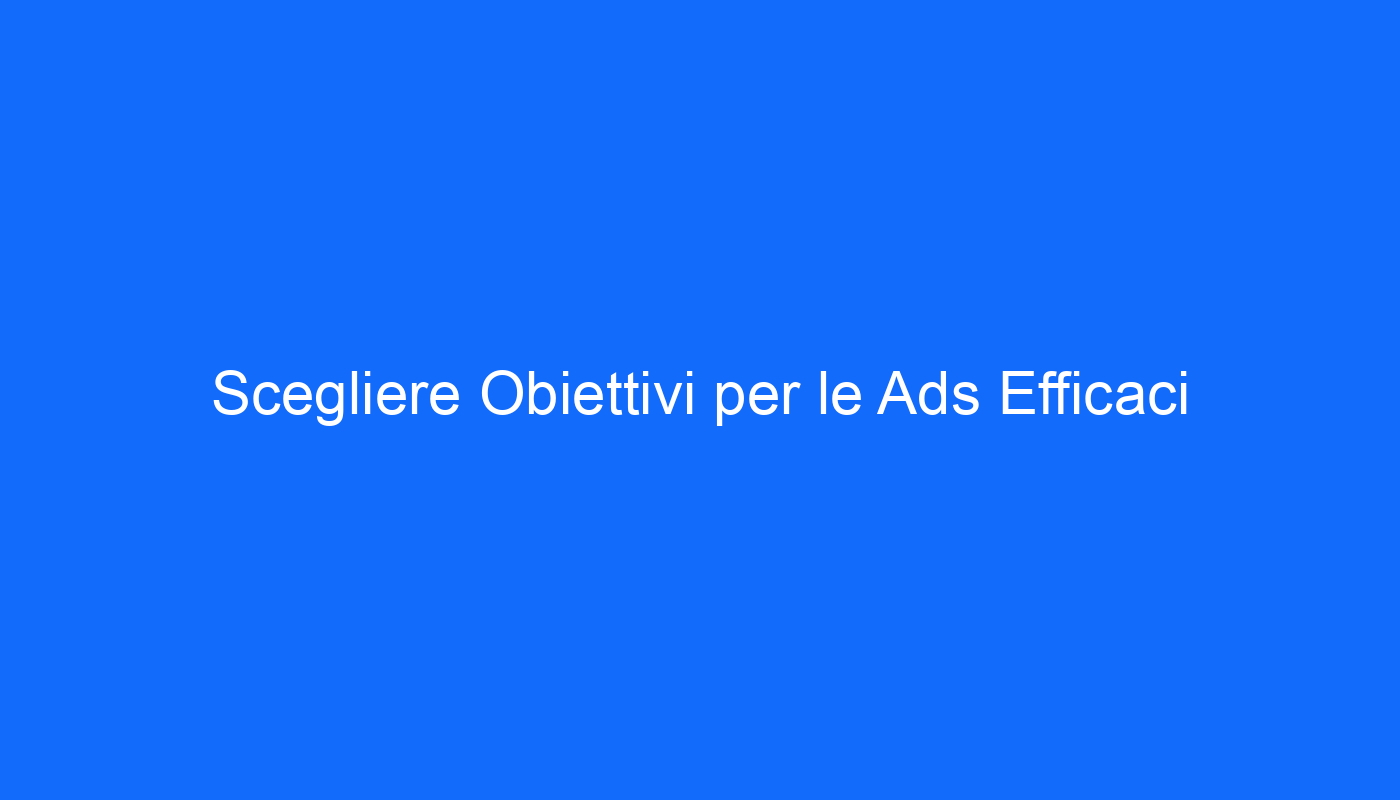 Scegliere l’Obiettivo Giusto per Ads: Il Vostro Successo Inizia Qui