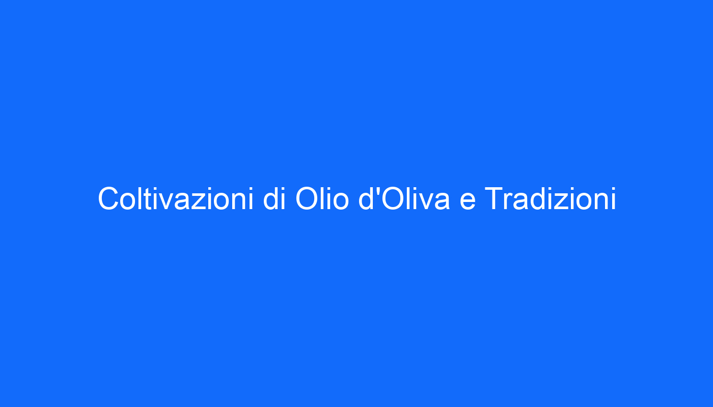 Olio d’Oliva: Coltivazioni e Tradizioni