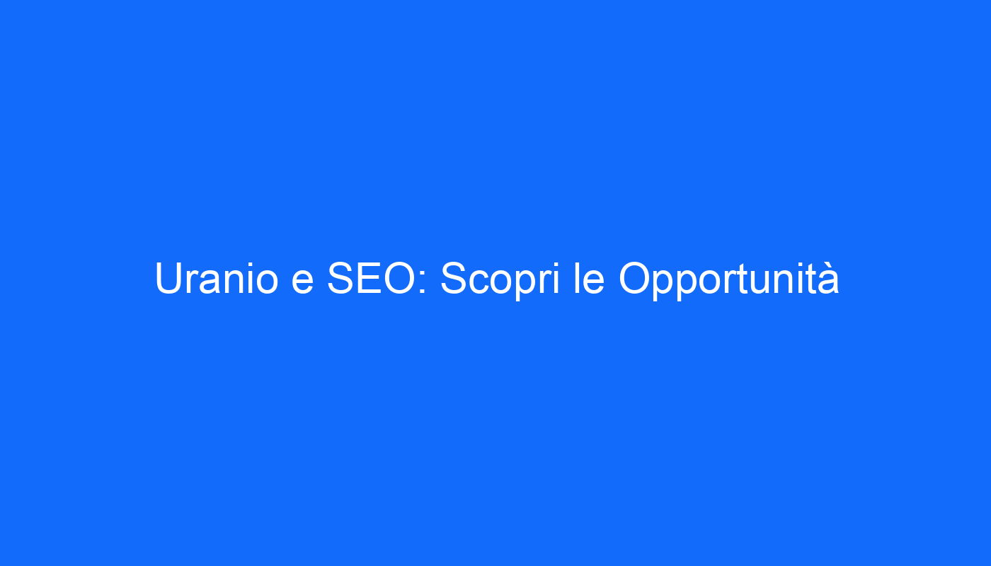 Potenza della SEO nell’Uranio: Scopri il Nostro Approccio