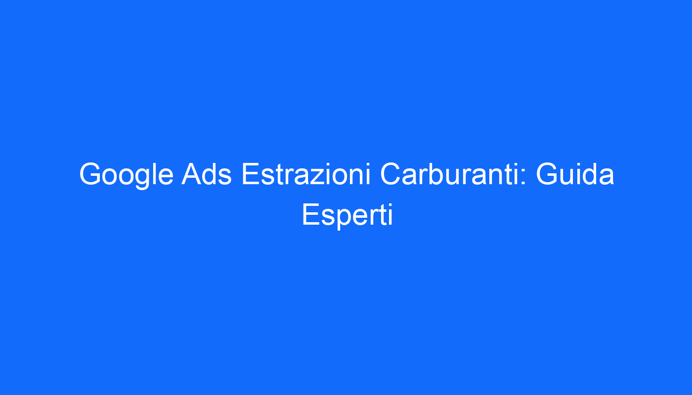Google Ads Estrazioni Carburanti: Guida Esperti