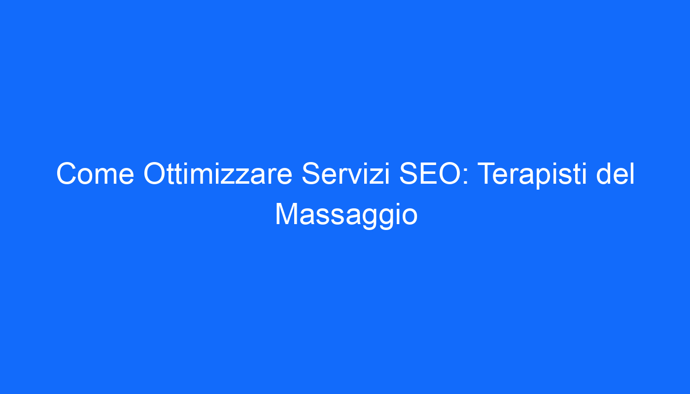 Ottimizza i tuoi servizi SEO: Sfrutta il potenziale dei terapisti del massaggio!