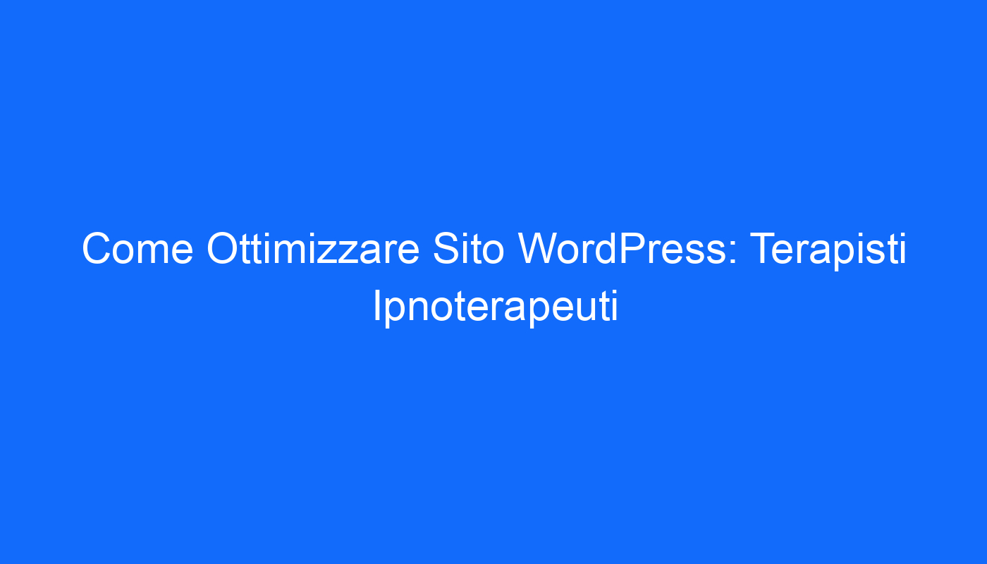 Come Ottimizzare Sito WordPress: Terapisti Ipnoterapeuti
