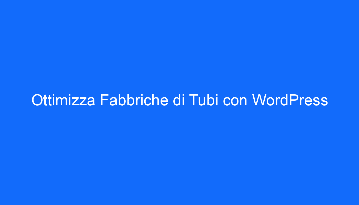 WordPress: Fabbriche di Tubi – Esperti in Creazione e Ottimizzazione