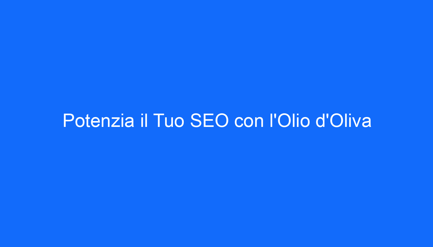 SEO e Olio d’Oliva: Una Sinergia Vincente