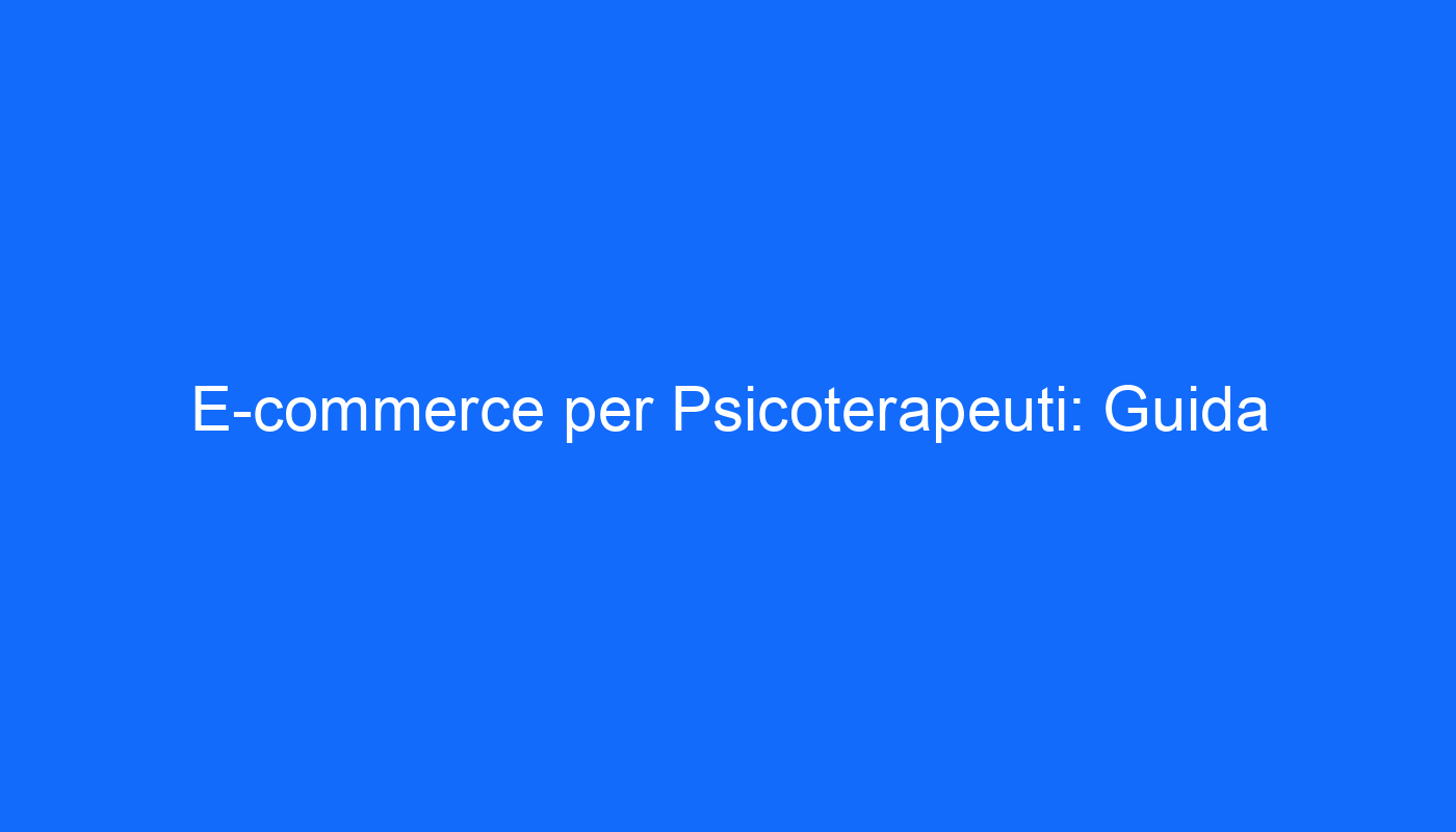 Il Mondo dell’E-commerce per Psicoterapeuti