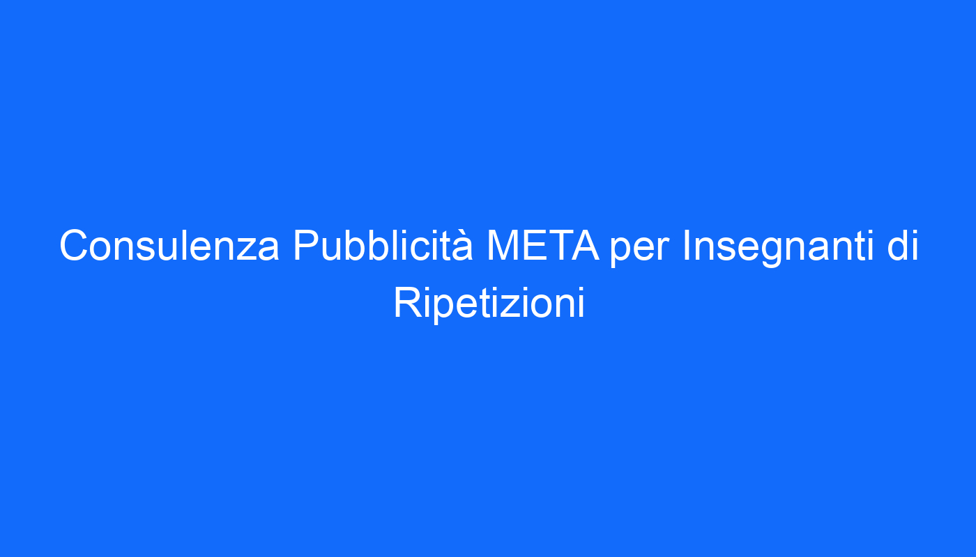 Sei un insegnante di ripetizioni e desideri aumentare la tua visibilità online? La consulenza pubblicitaria META potrebbe essere la soluzione che stai cercando. Con l’aiuto di esperti nel settore della pubblicità digitale, potrai migliorare la tua strategia di marketing e raggiungere un pubblico più ampio di studenti in cerca di supporto educativo. In questo articolo, esploreremo come la consulenza pubblicitaria META può aiutarti ad aumentare il tuo business come insegnante di ripetizioni.