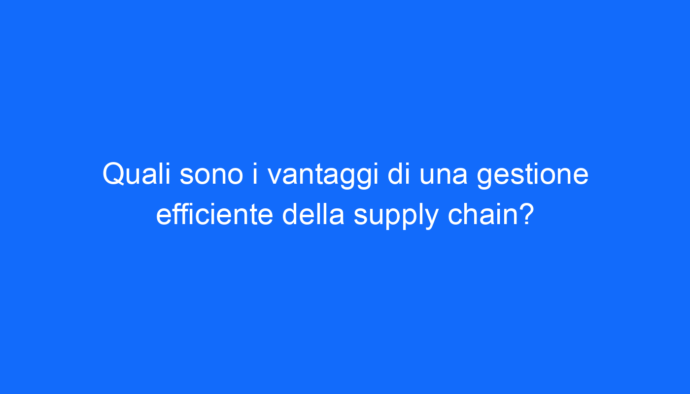 Quali sono i vantaggi di una gestione efficiente della supply chain?