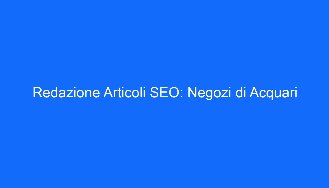 Vantaggi dei Servizi di Redazione Articoli SEO per i Negozi di Acquari: Aumenta la Visibilità del tuo Business