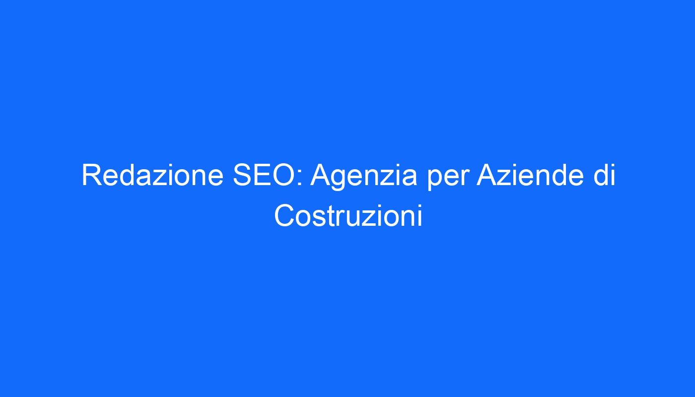 Affidati a una prestigiosa agenzia specializzata: Redazione SEO per Aziende di Costruzioni