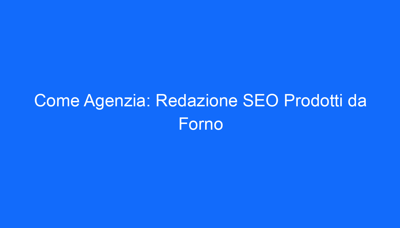 La Redazione SEO di Come Agenzia può aiutarti ad aumentare la visibilità online dei tuoi prodotti da forno, massimizzare le vendite e raggiungere nuovi clienti. Grazie all’ottimizzazione SEO, potrai posizionare il tuo sito web e i tuoi prodotti nelle prime posizioni dei motori di ricerca, attrarre più visitatori e raggiungere il tuo pubblico target. Contattaci oggi stesso per scoprire come possiamo aiutarti a far crescere il tuo business con la Redazione SEO di Come Agenzia.
