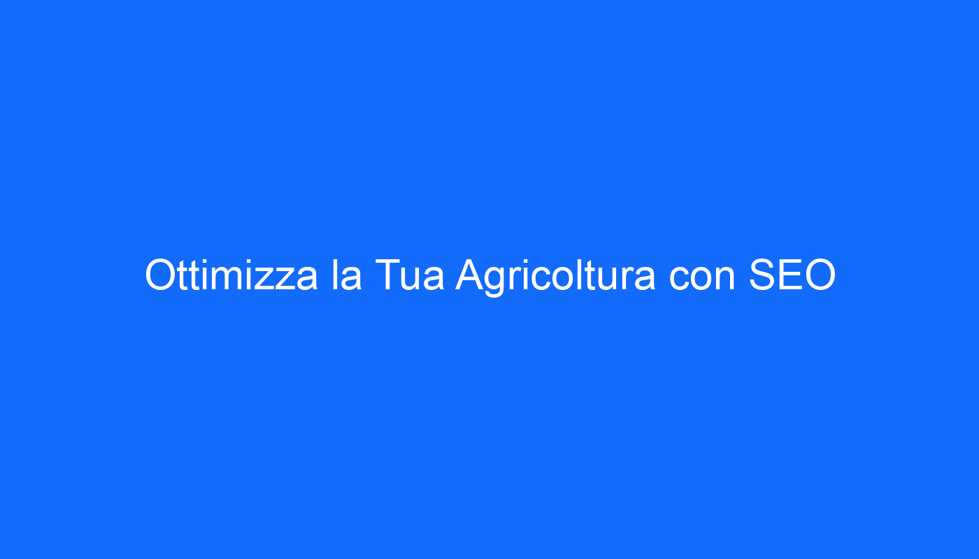 Coltivare il Successo: L’Importanza dell’Ottimizzazione SEO per l’Agricoltura