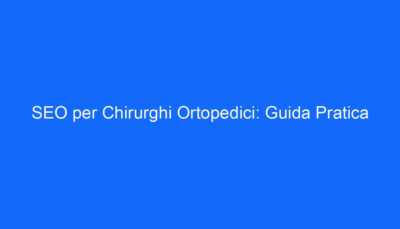 Nell’era digitale odierna, la visibilità online è diventata cruciale per ogni professionista, e i chirurghi ortopedici non fanno eccezione. Se desideri aumentare la tua presenza digitale e attrarre più pazienti, la redazione di articoli SEO è la strategia vincente. Il nostro team di esperti in SEO è dedicato a posizionare il tuo sito web ai vertici dei risultati di ricerca di Google. In questo articolo, esploreremo in dettaglio come possiamo aiutarti a ottenere risultati straordinari in tempi rapidi, grazie a tecniche di redazione ottimizzate per il settore ortopedico. Scoprirai anche perché siamo la migliore web agency per chirurghi ortopedici e come i nostri servizi possono cambiarti la vita.